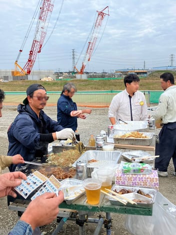 ある現場で関係業者の親睦会がありました。 BBQとビンゴが行われ、同じ現場でも様々な業種の人と話せる良い機会です。 仕事中とは違うリラックスした表情が見られ、笑顔のあふれる時間となりました。 現場の安全と品質を守るには、やっぱりチームの絆が大切だと改めて感じました。 引き続き、良いものづくりに取り組んでいきます。